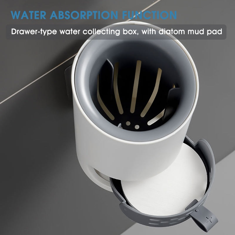 Drawer type of drop sink at the bottom can be put into the diatom mud pad equipped, quickly absorb the water in the brush frame and volatilize, preventing water leakage, no longer having a bad smell, and the vent design can make the toilet cleaning brush head quickly dry.