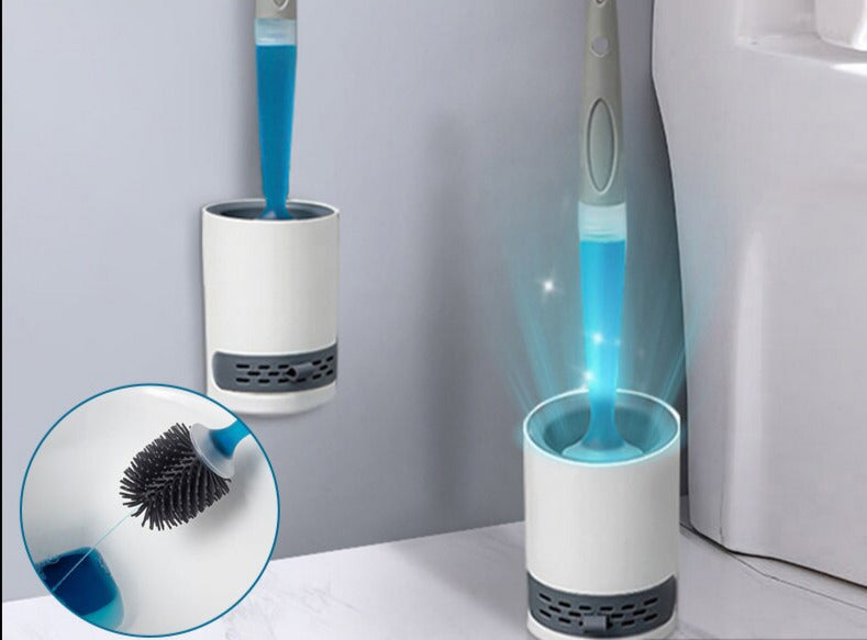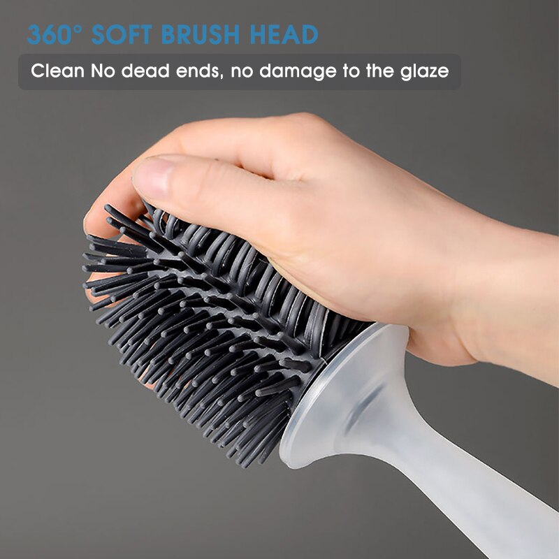 Silicone toilet brush with soft TPR bristles that are soft, strong, and dense to easily scrub and remove debris from the toilet bowl without causing invisible micro-scratches. The rounded shape cleans every corner of the toilet bowl 360° and can even reach stains under the rim to scrub away stains and create a sparkling bathroom.