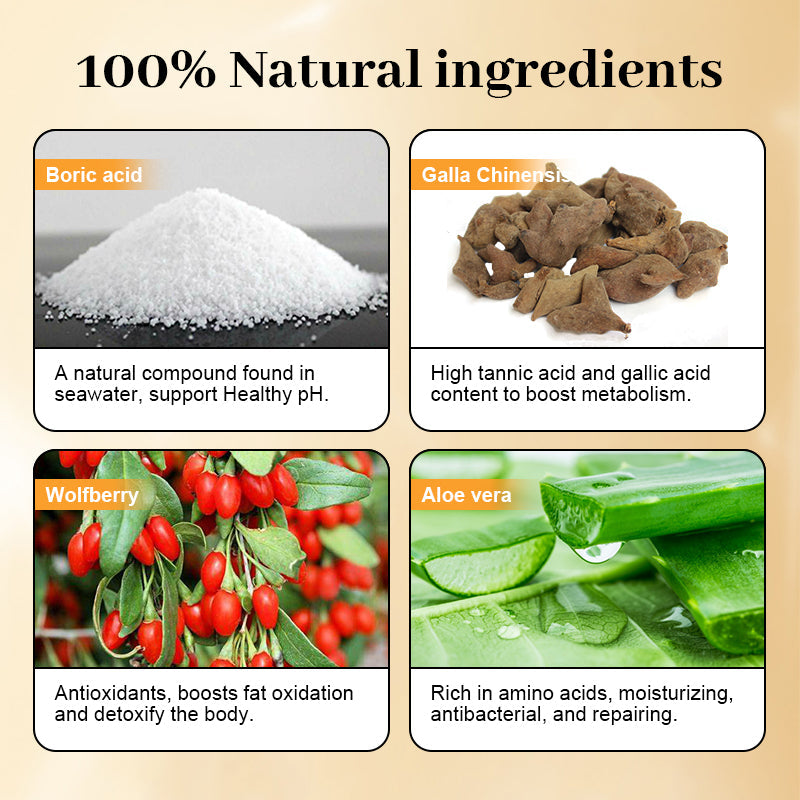 ● Main Ingredient: Boric acid, Galla Chinensis, Wolfberry, Aloe vera