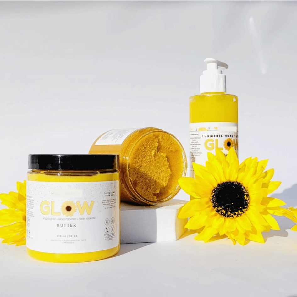 After cleansing and exfoliating your skin, apply our glow butter for a radiant complexion.