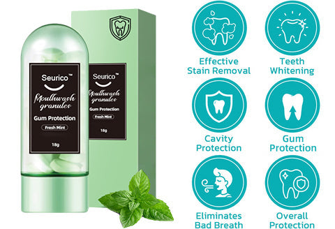 Seurico™ Convenient Gum Protection Pellets possesses the ability to eliminate 99.99% of bacteria, address bad breath, remove tooth plaque and tartar, tackle gingivitis and periodontitis, relieve toothaches, prevent and treat cavities, stimulate restorative dentin formation.