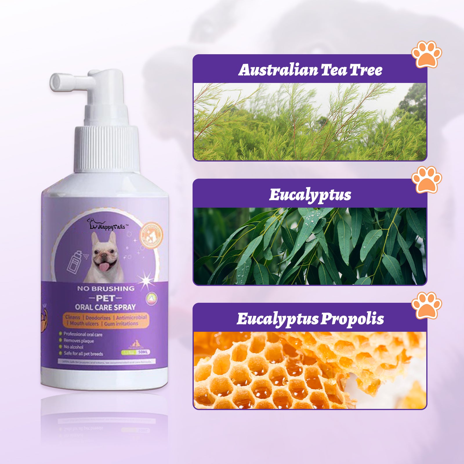 "As a veterinary dentist, I have seen firsthand the importance of proper oral care for pets. HappyTails™ Pet Oral Care Spray is a game-changer in the world of pet dental hygiene. Its science-backed formula, featuring Australian Tea Tree and Eucalyptus Propolis, effectively fights plaque, tartar, and inflammation. I highly recommend HappyTails™ Pet Oral Care Spray to pet owners who want to ensure their furry friends have healthy teeth, gums, and fresh breath. It's an easy and convenient solution that makes a real difference in your pet's oral health."