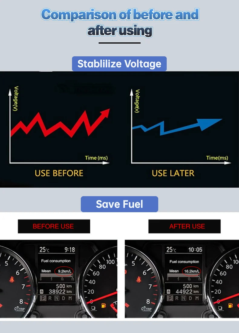 Based on real-time data obtained from the vehicle's ECU, the intelligent control unit of FemiPure™ Fuel Saver can make real-time adjustments to the engine's performance and fuel injection. It optimizes the air-fuel ratio, ignition timing, and fuel injection to ensure that the fuel is burned more efficiently, reducing waste.