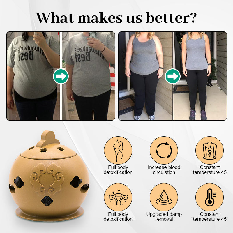 All in all, by working on acupoints, warm heat penetrates into body to remove dirts, impurities and toxins that accumulate body fat. Helps the body lose weight and eliminate swelling.