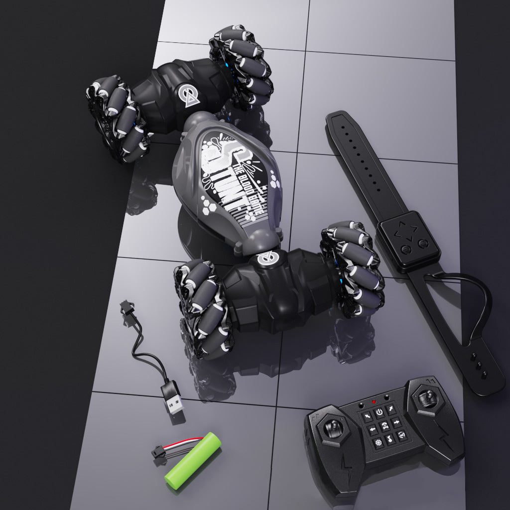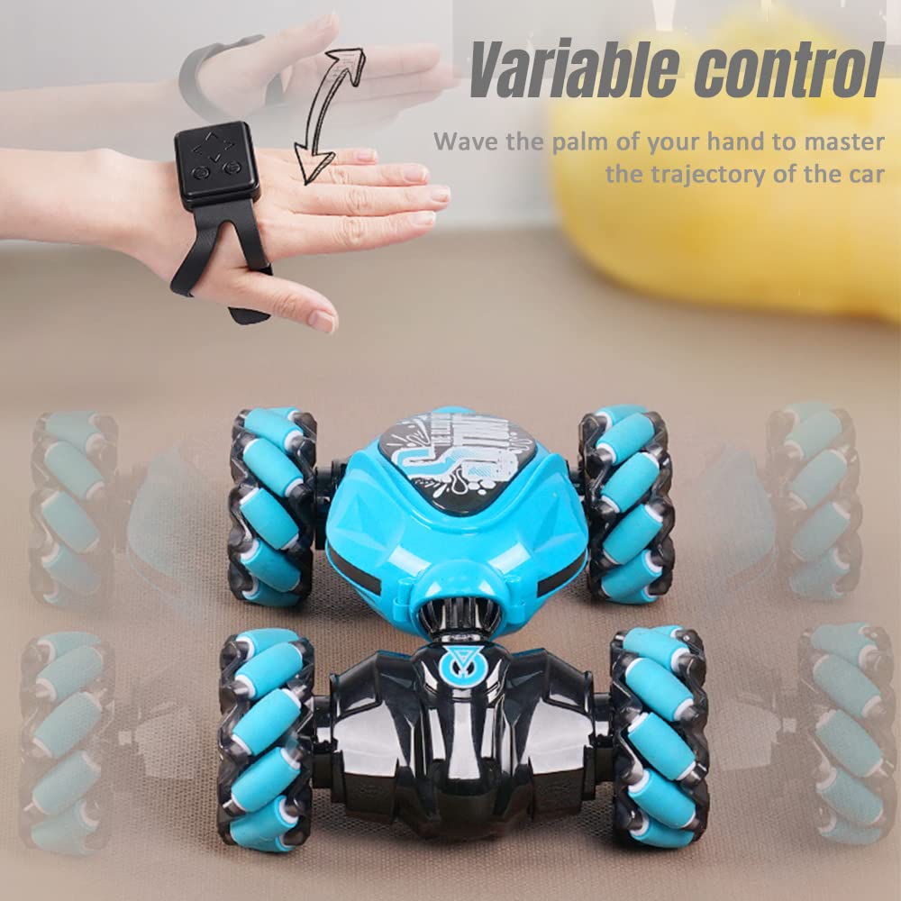 - Double Ways Control Modes:Ā Our rc stunt car is upgraded with 2 control ways: gravity sensor watch control and remote controller. You just need to wear a gesture-sensing watch and give a gesture, and the remote control car will act accordingly. Or you can easy to control remote controller with 2.4ghz transmitter strength, that is sensitive and responsive, you can be maneuvered even from a far distance.(You can not control the car toy with two way at the same time.)
