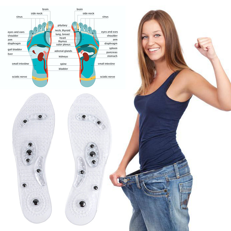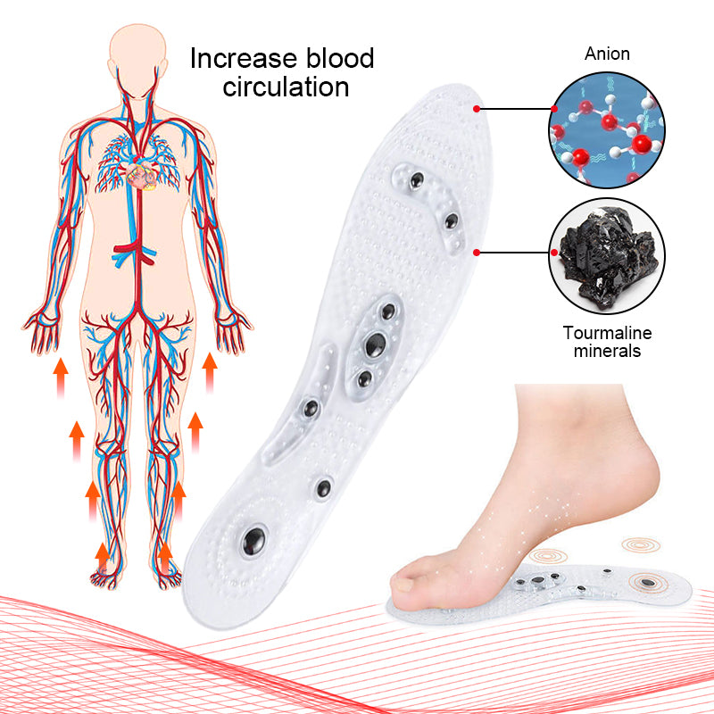 Magnetic Acupressure Insoles combine traditional acupressure with three advanced scientific innovations: Magnetic Acupressure, Far Infrared Therapy and Negative Ion Therapy, which help improve blood circulation, boost metabolism, reduce fat, lose weight, reduce stress, and in crease energy levels.