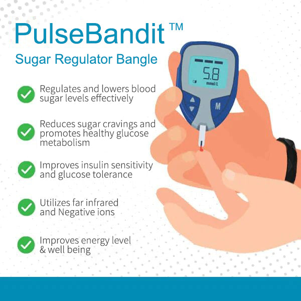 The PulseBandit™ Sugar Regulator Bangle harnesses the power of two cutting-edge technologies – negative ion and far infrared – to effectively manage blood sugar levels.